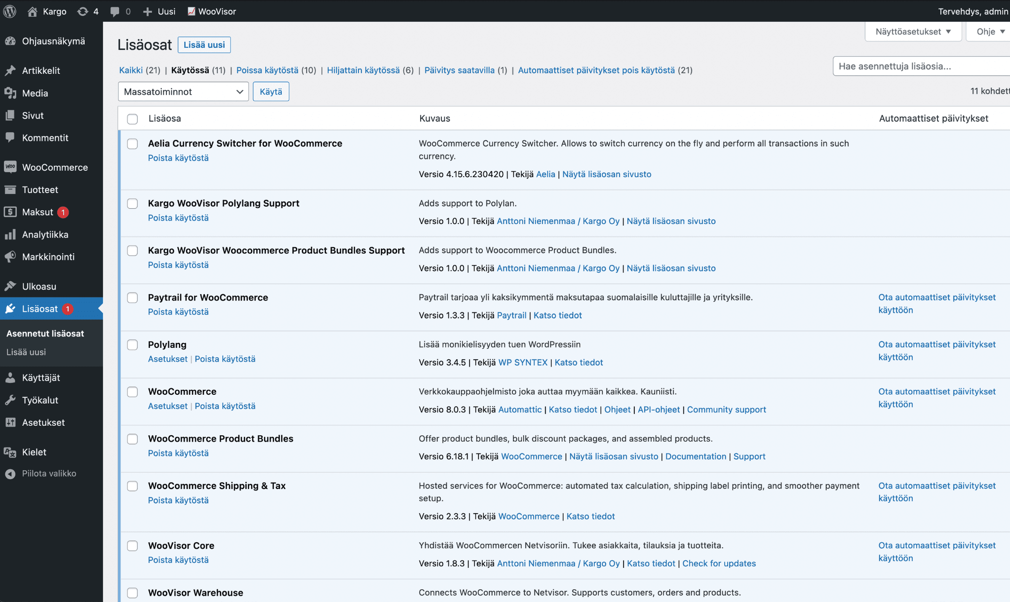 Kehitämme WooVisoria asiakkaiden toiveiden pohjalta. Paras tapa vaikuttaa, on lähettää toiveita sähköpostitse anttoni@kargo.fi